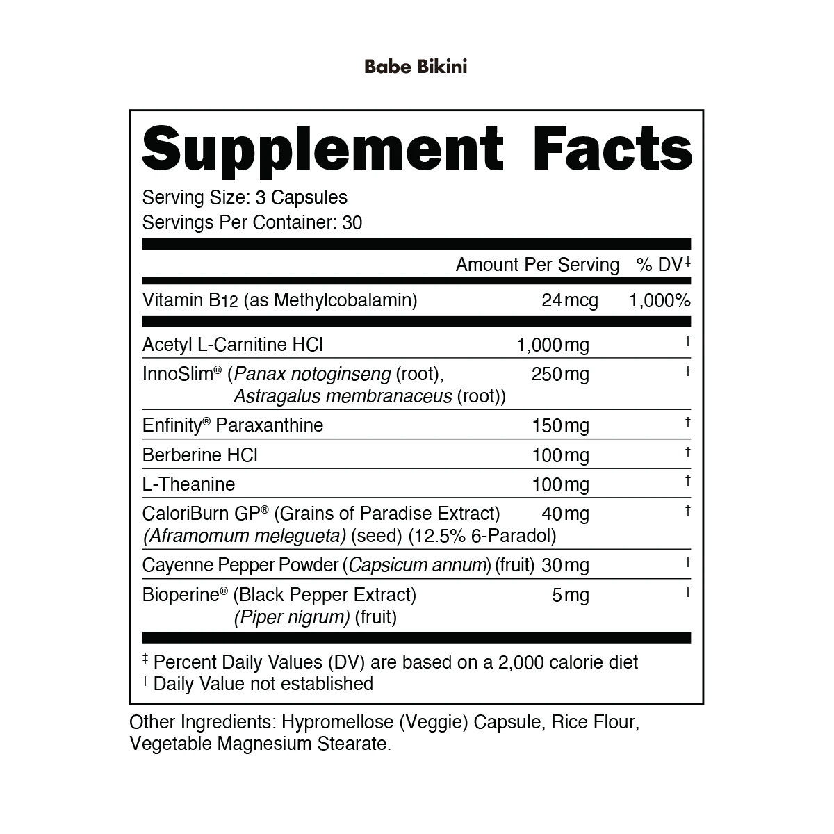 Because the key to looking swimsuit-ready is decreasing your body fat. That’s why we created Babe Bikini. Clinically formulated, Babe Bikini is the latest innovation in weight management. We combined scientifically developed ingredients like Innoslim® and Caloriburn® to speed up your metabolism when combined with exercise, and enfinity® to promote improved mental alertness and focus, without the side effects of caffeine.